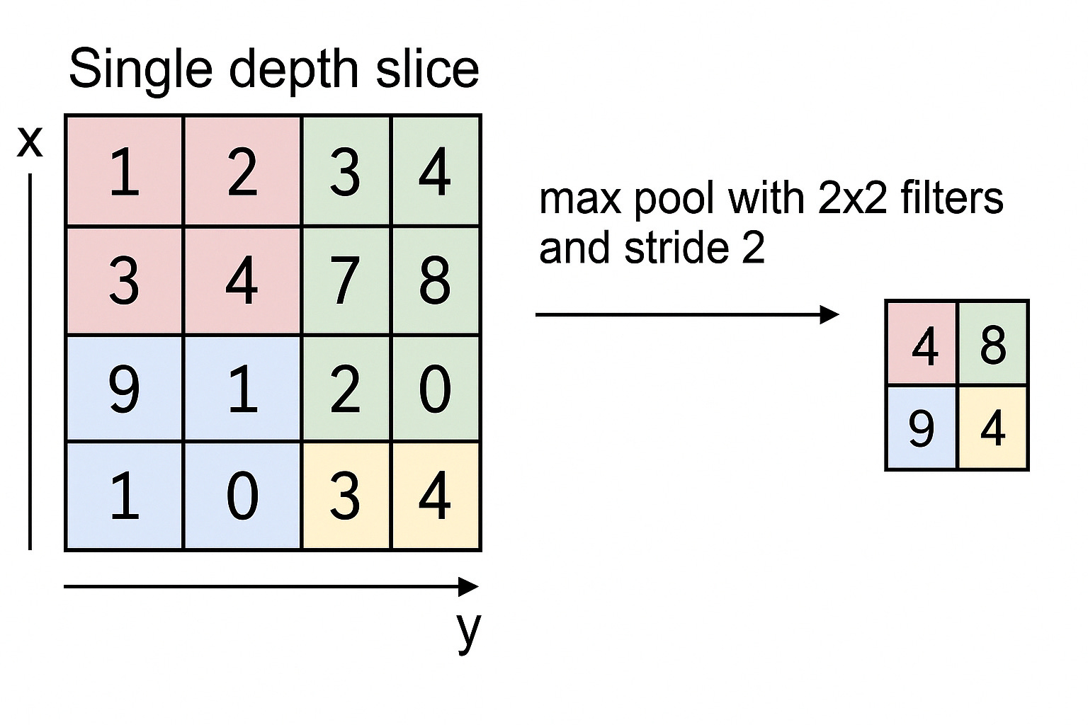 This process helps the network learn hierarchical features, going from low-level (edges) to high-level (object parts or full objects) as we go deeper.